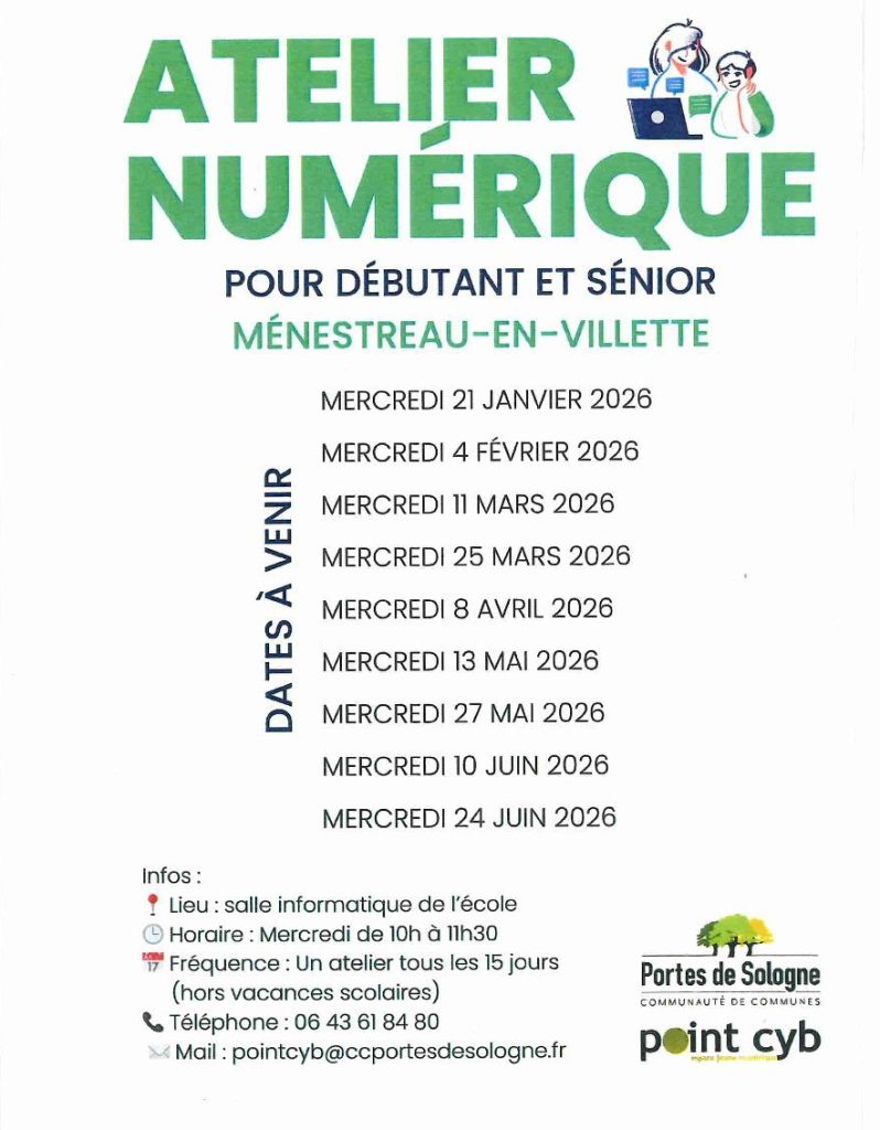 (mail : pointcyb@ccportesdesologne.fr ou par téléphone : 06 43 61 84 80)
