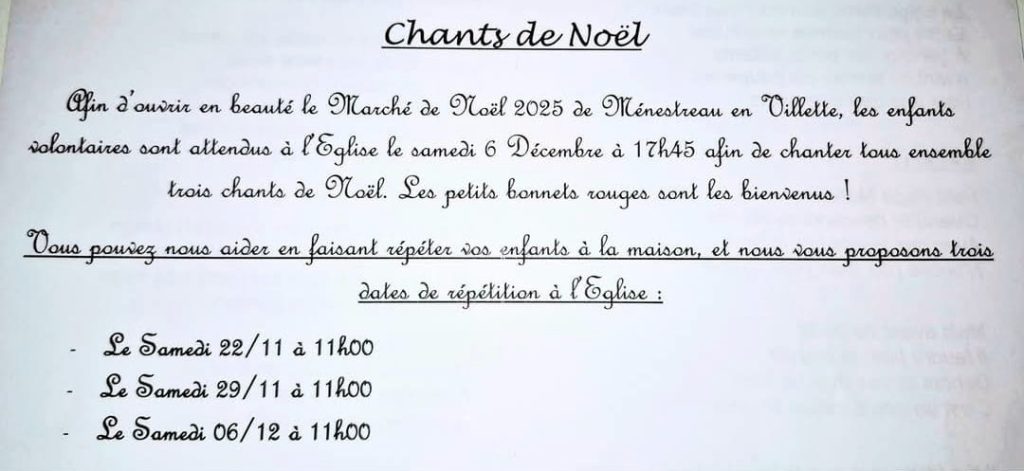 Les chants seront également distribués samedi pour les enfants qui ne seraient pas scolarisés à Ménestreau ou en cas de perte..