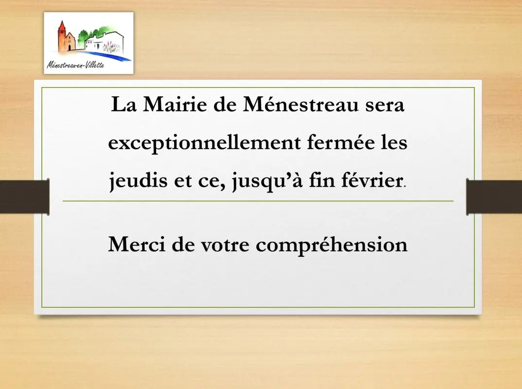 La Mairie sera exceptionnellement fermée les jeudis et ce, jusqu’à fin février.