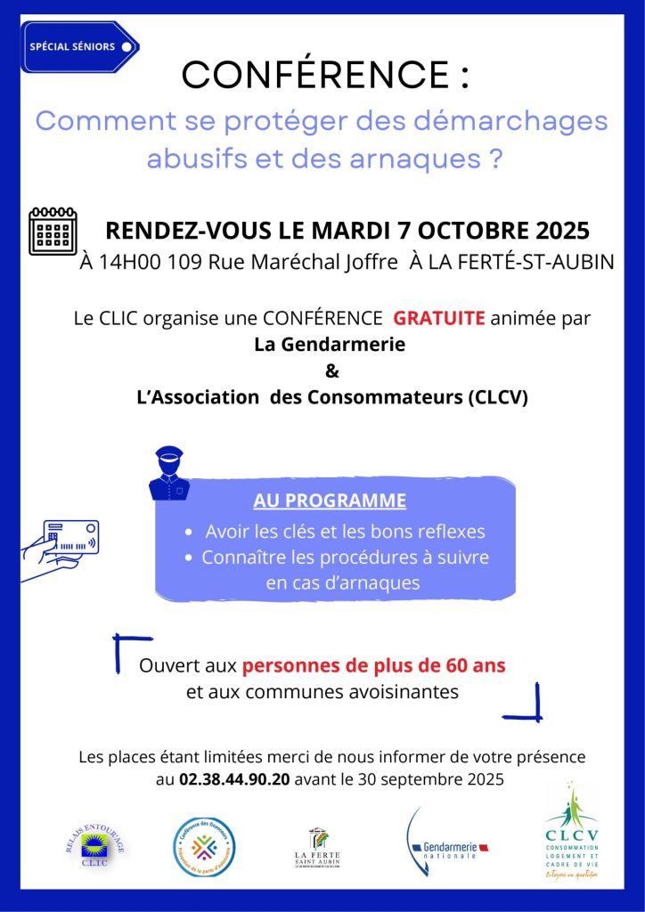 CONFÉRENCE SUR LE DÉMARCHAGE ABUSIF en partenariat avec l’association CLCV et la GENDARMERIE.