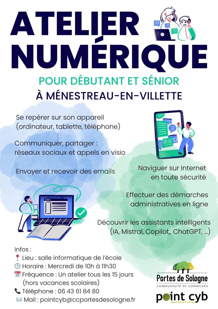 (mail : pointcyb@ccportesdesologne.fr ou par téléphone : 06 43 61 84 80)